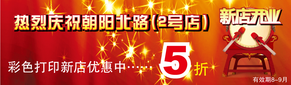 慶祝朝陽(yáng)北路8月8日開業(yè),新店開業(yè),新店彩色打印5折優(yōu)惠!讓利不讓品質(zhì)!